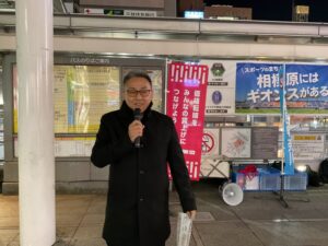 2025年4月13日相模大野駅にて神奈川20区立憲民主党総支部長「大塚さゆり氏」による街頭演説で、野田代表による参議院選挙を見据えた応援演説が実施されたため、聴衆にいきました。