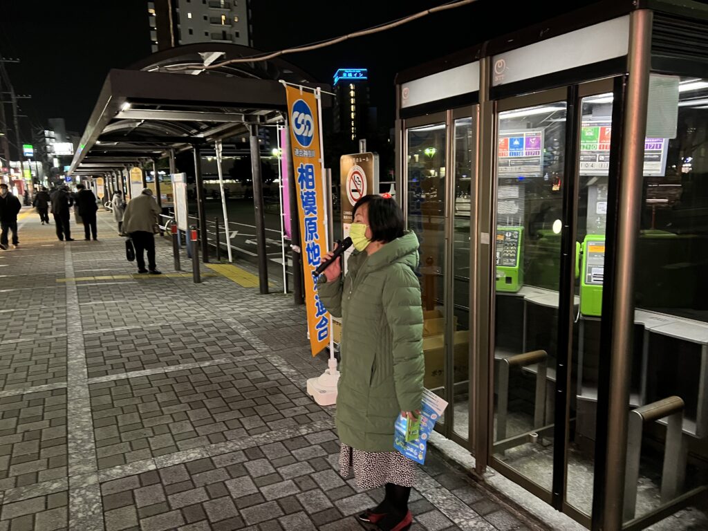 12月9日「れんごうの日」街頭行動を感染対策を行ったうえ、淵野辺駅にて行いました。