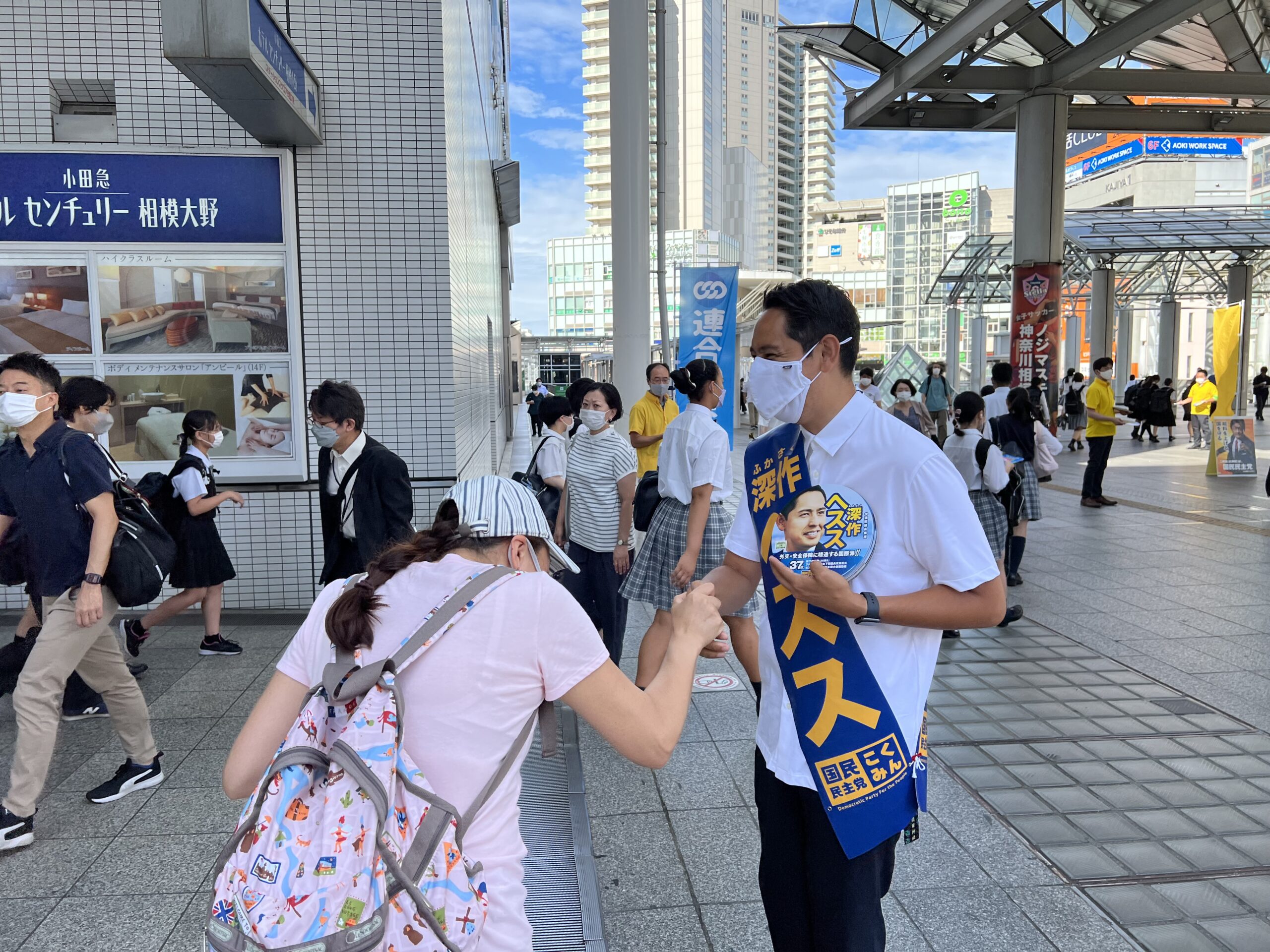 7月5日、今日も朝から暑い日となっていますが、選挙も終盤戦。「ヘススin相模大野」の早朝活動を仲間の皆さんと応援しました!今日は、夕方17時~、ここ相模大野に連合芳野会長も応援に駆けつけてくれます!!