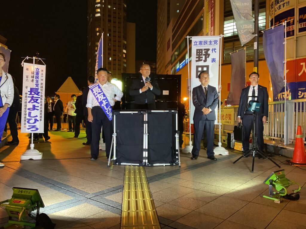 2024年10月24日に相模大野駅、橋本駅に立憲民主党の野田代表が「大塚さゆり候補」、「長友よしひろ候補」の応援演説に駆けつけて頂きました。
