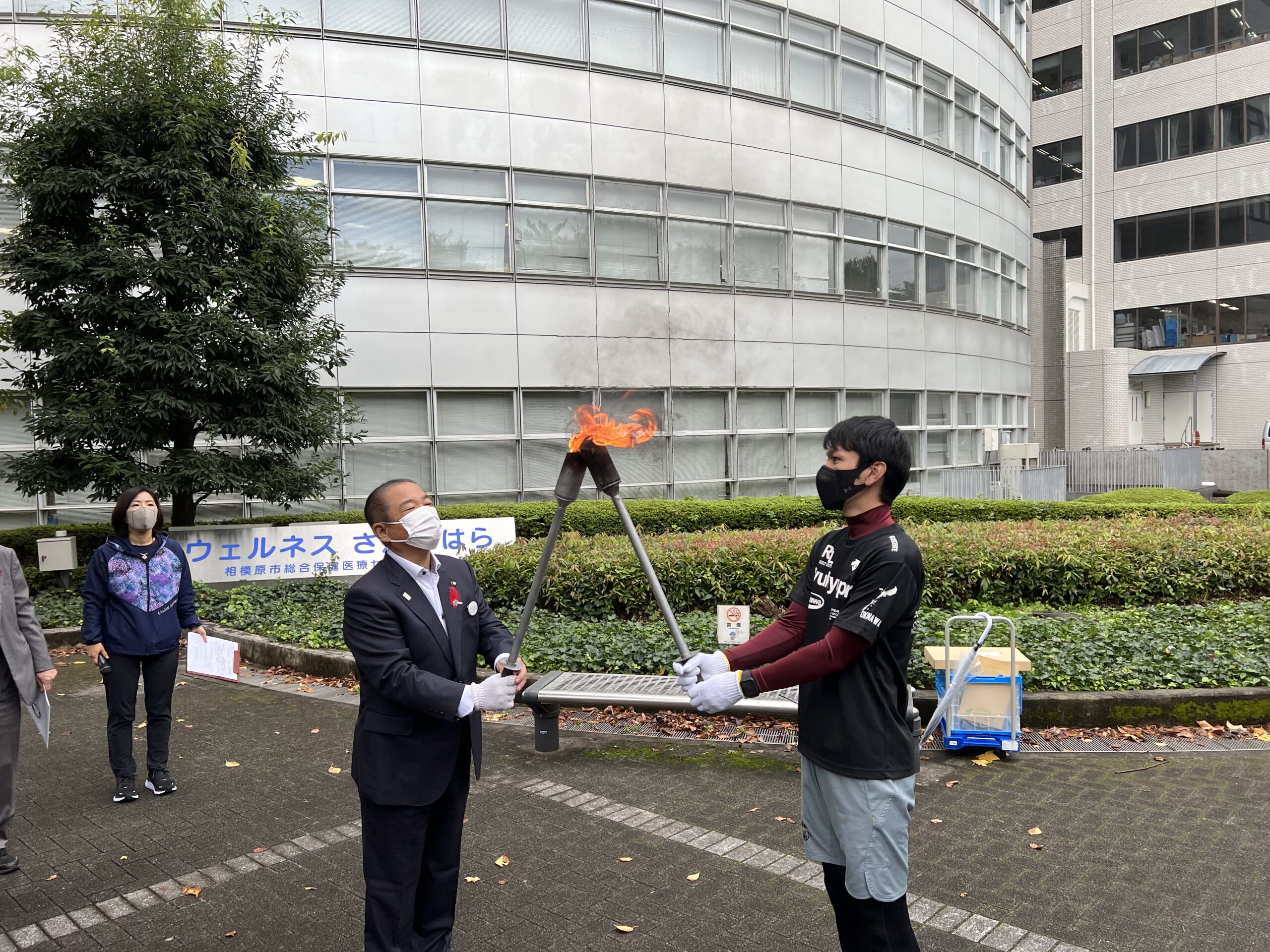 10月19日、「神奈川県/反核・平和の火リレー」相模原出発式に参加しました。コロナ禍の影響により、一昨年、昨年は自治体要請行動を行い、今年は3年ぶりのリレーの開催です。今回のランナーは、相模原市教組と相模原市職労のメンバーが中心となり、目的地の座間市に向け元気よく出発しました。